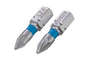 Комплект отверточных насадок (бит) предназначен для эффективного откручивания и закручивания крепежных элементов с типом шлица PZ1. Используются биты как в ручном инструменте, так и с дрелями, шуруповертами и винтовертами, благодаря универсальному шестигранному хвостовику 1/4". Длина насадок составляет 25 мм. Насадки изготовлены из высокопрочной стали S2, которая считается лучшей в своем сегменте. В составе этой стали присутствуют молибден и кремний, которые придают изделию высокое сопротивление к нагрузкам и низкий порог обратимой деформации. Также S2 отличается долговечностью и не подвержена хрупкому разрушению, биты устойчивы к коррозии. Твердость составляет 61-62 HRC. Биты маркируются синим цветом, который указывает на тип шлица - PZ.