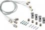Подвесное крепление для ультратонких панелей СВО. Комплектация: 4 троса (1,5 м каждый, с монтажными креплениями на панель и потолок), комплект дюбелей и шурупов для монтажа на потолочную поверхность.