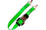 Самозатягивающийся ремень прост и надёжен в эксплуатации, преимущество данного ремня в том, что при его эксплуатации, лента, размещённая внутри корпуса легко сматывается и разматывается до нужной длины, необходимой для фиксации груза, лента не провисает и не собирает грязь, увеличивая срок эксплуатации ремня. Части корпуса самозатягивающегося ремня изготовлены из прочного пластика и металла, внутри корпуса помещён возвратный механизм (втягивающее устройство), который позволяет скручивать ленту в первоначальное положение внутри корпуса и натяжной механизм, который предотвращает ослабление ленты, тем самым надёжно фиксируя груз. Натяжное устройство оснащено храповым механизмом, зубья которого имеют упор с одной стороны. Храповый механизм позволяет выполнять прерывисто-вращательные движения только в одном направлении, блокируя движение в другую сторону, тем самым предотвращая самопроизвольное ослабление ленты. Храповый механизм приводит в движение ручка ремня, расположенная на корпусе. Движением ручки создаётся натяжение ленты и фиксация груза. Под ручкой корпуса расположен рычаг возвратного механизма, при нажатии которого вниз происходит втягивание ленты в первоначальное положение. На концах ремня размещены металлические крюки, которые крепятся к точкам крепления, расположенными на платформе транспортного средства. Область применения данных ремней ограничена фиксацией тяжёлых грузов, таких как трубы, пиломатериал или древесина, тяжёлые металлоконструкции.