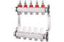 При монтаже водяного напольного обогрева необходимо установить коллектор, который отвечает за равномерное распределение тепла в контурах. Одно из возможных решений - коллектор с расходомерами. В составе изделия: две латунные коллекторные балки, расходомеры (на входящей линии), термоклапаны с ручками управления (на обратном коллекторе), кронштейны для крепления в шкафу или на стену. На термостатические клапаны можно установить сервоприводами 30х1,5 (не входят в комплектацию).