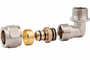 Уголок обжимной SD Forte Ø16х1/2" НР — разборной латунный фитинг с никелированным покрытием, обжимной, с переходом на наружную резьбу.